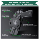 - 【Full Cover Trigger, No Scratch, No Jitter】 The holsters for Colt 1911 4.25″/4.5″/5″ full covering all access to the trigger, which can avoid all possible accidents. All edges are polished and smooth designed be exceptional consistency and accuracy. Smooth inside instructure can avoid scratching your love handgun