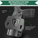 - 【Posi-Click Audible Retention Lock System, Fits Like A Glove】 The OWB holster Springfield Hellcat Pro possess Posi-Click Audible Retention Lock System, you would hear a “click” sound when your pistol is firmly seated
