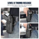 - Level II Retention with Thumb Release: Features a secure locking mechanism with intuitive thumb release, providing both strong retention and rapid access.