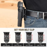 360° Adjustable Belt Clip – Compatible with belts 1.5”, 1.75”, 2.0”, and 2.25” wide. The clip rotates 360° for fully customizable carry positions.
