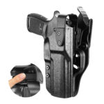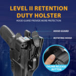 - Level II Retention Duty Holster: Comes with a hook guard and rotating hood that provides additional protection against someone trying to take it.