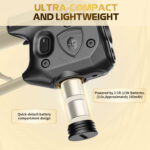 - 𝗘𝗳𝗳𝗶𝗰𝗶𝗲𝗻𝘁 𝗣𝗼𝘄𝗲𝗿 𝗮𝗻𝗱 𝗥𝘂𝗻𝘁𝗶𝗺𝗲: Powered by two CR-1/3N batteries, the weapon light delivers a runtime of 55 minutes to 10 hours based on the selected mode, balancing long-lasting performance with compact power efficiency. The indicator shows Green when the battery level is at 60%-100%, Blue at 20%-60%, Red at 0-20%.