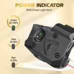 - 𝗩𝗲𝗿𝘀𝗮𝘁𝗶𝗹𝗲 𝗜𝗹𝗹𝘂𝗺𝗶𝗻𝗮𝘁𝗶𝗼𝗻 𝗢𝗽𝘁𝗶𝗼𝗻𝘀: Laser only, led light only, or both combined, and an optional LED strobe mode activated by double-pressing either side switch — A quality 630–640nm red laser at <5mW (CLASS IIIa) and an 150-lumen LED with a 50,000-hour lifespan, this combo provides precision and reliability in various applications