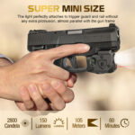 - 𝗟𝗶𝗴𝗵𝘁𝘄𝗲𝗶𝗴𝗵𝘁 𝗮𝗻𝗱 𝗗𝘂𝗿𝗮𝗯𝗹𝗲 𝗖𝗼𝗻𝘀𝘁𝗿𝘂𝗰𝘁𝗶𝗼𝗻: Built with a lightweight, impact-resistant polymer housing, this pistol light offers durable performance without compromising firearm handling, even in demanding conditions