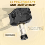 - 𝗘𝗳𝗳𝗶𝗰𝗶𝗲𝗻𝘁 𝗣𝗼𝘄𝗲𝗿 𝗮𝗻𝗱 𝗥𝘂𝗻𝘁𝗶𝗺𝗲: Powered by two CR-1/3N batteries, the weapon light delivers a runtime of 55 minutes to 10 hours based on the selected mode, balancing long-lasting performance with compact power efficiency. The indicator shows Green when the battery level is at 60%-100%, Blue at 20%-60%, Red at 0-20%.