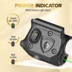 - 𝗘𝗳𝗳𝗶𝗰𝗶𝗲𝗻𝘁 𝗣𝗼𝘄𝗲𝗿 𝗮𝗻𝗱 𝗥𝘂𝗻𝘁𝗶𝗺𝗲: Powered by two CR-1/3 batteries, the weapon light delivers a runtime of 55 minutes to 10 hours based on the selected mode, balancing long-lasting performance with compact power efficiency. The indicator shows Green when the battery level is at 60%-100%, Blue at 20%-60%, Red at 0-20%.
