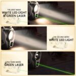 - 𝗩𝗲𝗿𝘀𝗮𝘁𝗶𝗹𝗲 𝗜𝗹𝗹𝘂𝗺𝗶𝗻𝗮𝘁𝗶𝗼𝗻 𝗢𝗽𝘁𝗶𝗼𝗻𝘀: Laser only, led light only, or both combined, and an optional LED strobe mode activated by double-pressing either side switch — A quality 510–530nm green laser at <5mW (CLASS IIIa) and an 150-lumen LED with a 50,000-hour lifespan, this combo provides precision and reliability in various applications