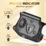 - 𝗘𝗳𝗳𝗶𝗰𝗶𝗲𝗻𝘁 𝗣𝗼𝘄𝗲𝗿 𝗮𝗻𝗱 𝗥𝘂𝗻𝘁𝗶𝗺𝗲: Powered by two CR-1/3N batteries, the weapon light delivers a runtime of 55 minutes to 10 hours based on the selected mode, balancing long-lasting performance with compact power efficiency. The indicator shows Green when the battery level is at 60%-100%, Blue at 20%-60%, Red at 0-20%.
