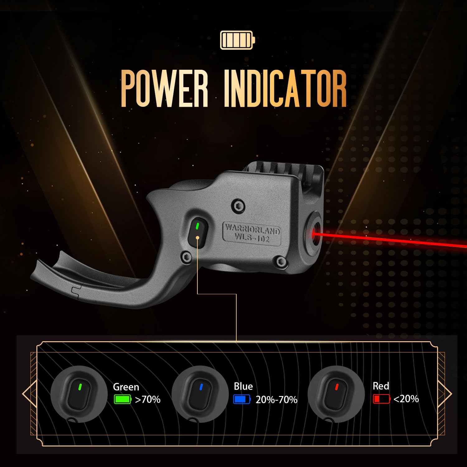 Class IIIa red laser (<5mW), wavelength 640–660nm, providing clear visibility up to 50 feet.