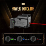 - The first laser sight on the market with a power indicator, always get ready for tactical events and protection. The indicator shows Green when the battery level is at 70%-100%, Blue at 20%-70%, Red at 0-20%.