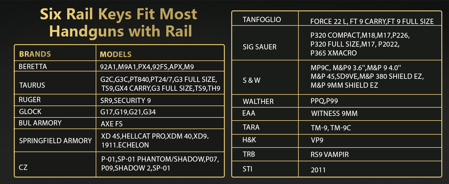 - Universal Compatibility: Compatible with most rail-equipped handguns and supplied with 6 different keys for easy attachment to various pistols. Ideal for use as a universal rail mount pistol light.