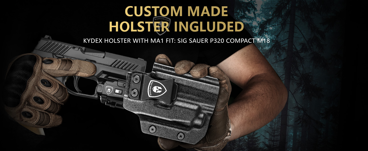 - What You Get: 1* WARRIORLAND CROSSBOW MA1 Universal Light; 1* IWB KYDEX P320 Compact M18 Holster(RH); 6*Rail Keys; 1*Allen Key; 1*Screwdriver; 1*Magnetic Charging Cable; 1*User Manual
